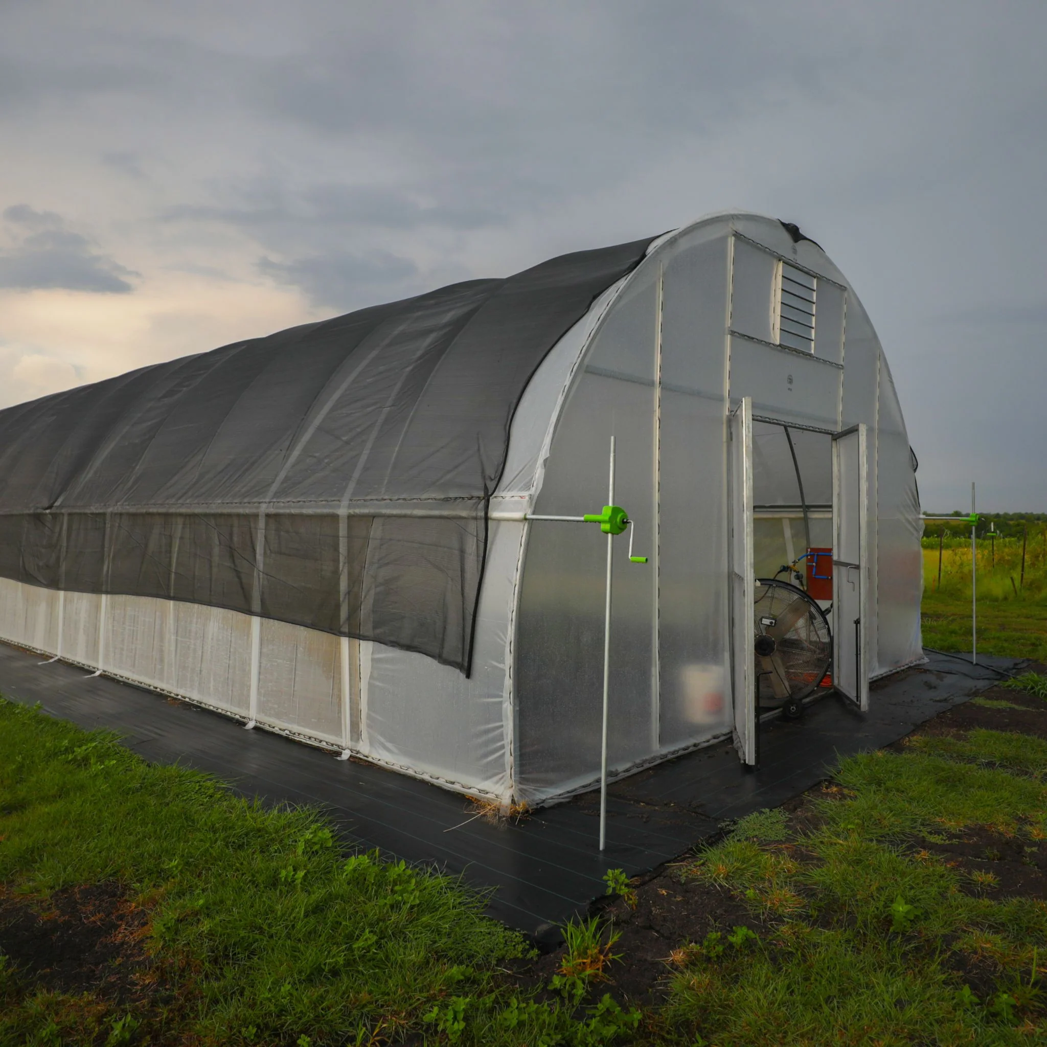 Bring outside air into your greenhouse with this intake shutter. Aluminum shutters open with negative pressure as outdoor air is drawn in through the shutter, and hot air is exhausted through a motorized shutter fan on opposite sides of the hoop house. This shutter is designed for easy installation with spring wire and lock channel and this hardware kit. Check out this article on greenhouse ventilation to learn more.